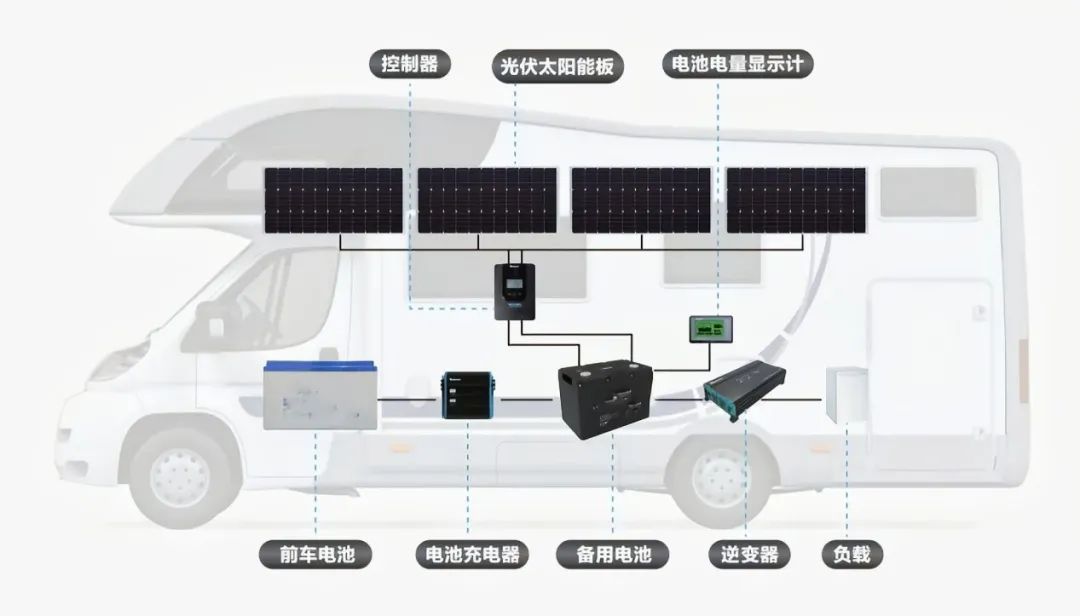 太陽能板產(chǎn)生的這種能量為直流電,如果是12V,可以為房車內(nèi)直流12V的電器,燈光,電子設(shè)備直接供電,如果需要使用家用交流電電器,則需要逆變器把蓄電池內(nèi)電能轉(zhuǎn)化為交流電使用。